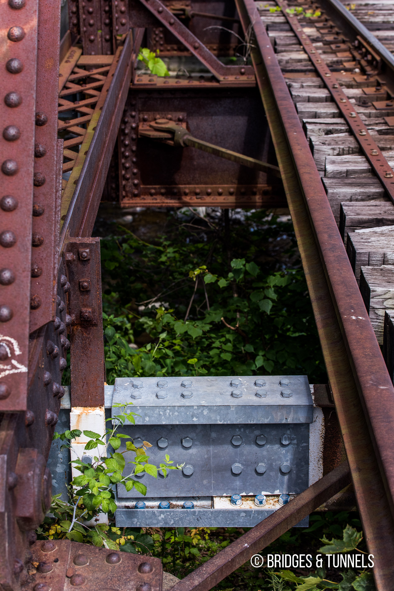 The bridge over Oil Creek at the Franklin Branch’s eastern terminus was originally constructed by the A&GW in 1864. 5 The four-span Pratt through truss was destroyed by a fire on November 4, 1890, 1 and replaced by a two-span Pratt through truss in 1892. 1 2