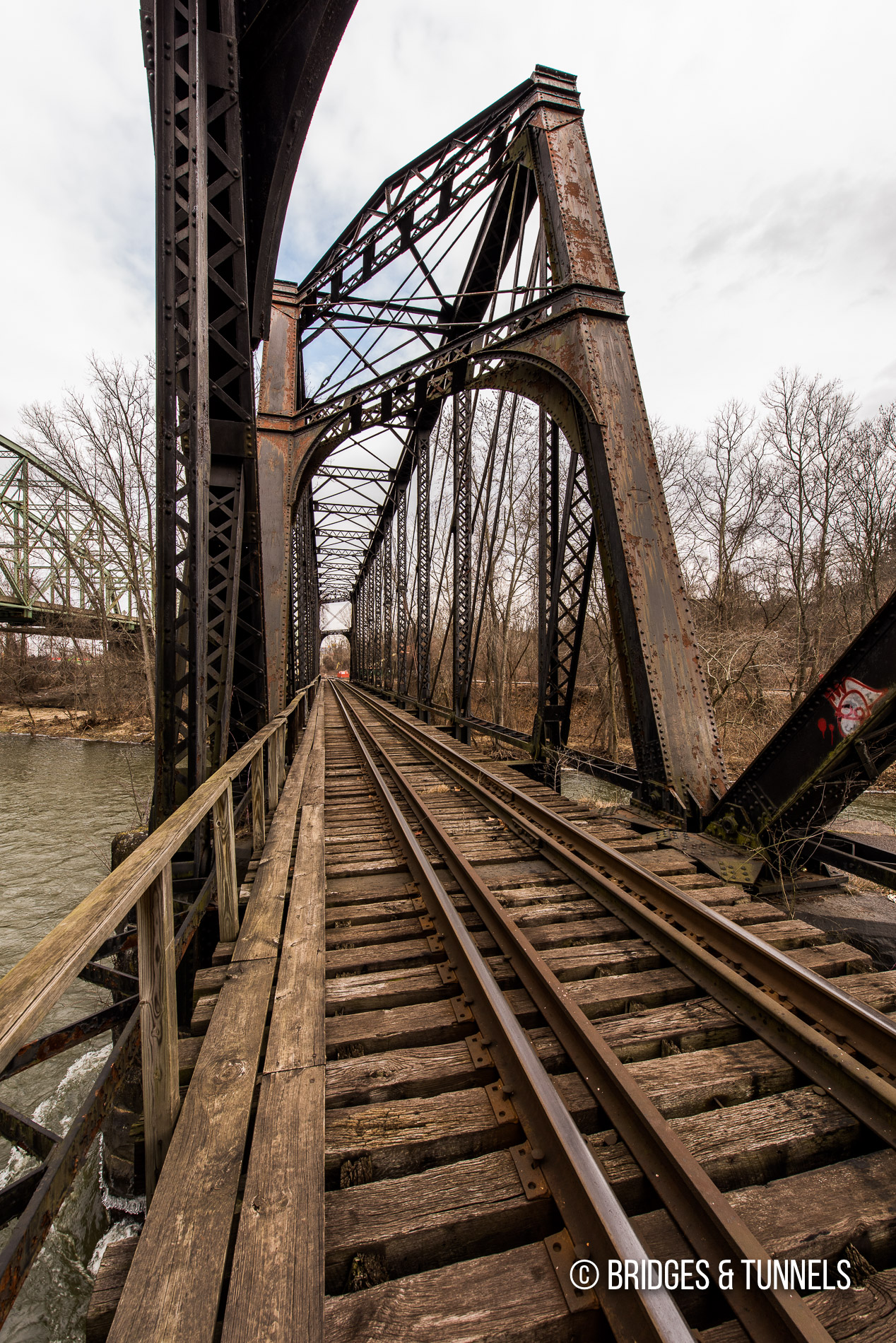 In August 1901, the BR&P, B&O, and the Pittsburg & Lake Erie came together to construct a bridge over the Shenango River just south of Mahoning Avenue. 4 The new bridge, a Whipple through truss and Pratt through truss, was built to connect the BR&P to the Pittsburg & Lake Erie Railroad and B&O 2 and to the city. 1 The railroad, with three operators, would also serve several new factories, including Hartman Manufacturing and the Baldwin & Graham stove works.