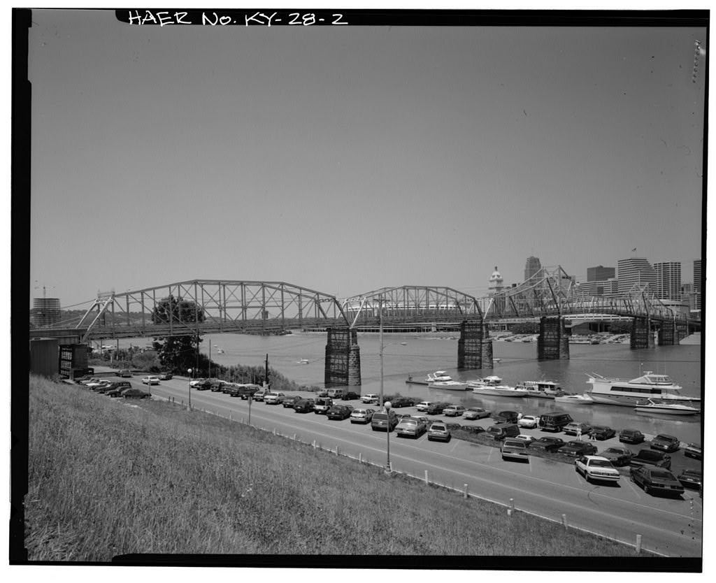 • Spans: 151' viaduct, 108' over Ludlow St., 81' viaduct, 162' truss, 252' cantilever arm in Cincinnati, 252' cantilever arm in Newport, 254'×2 trusses, 319' viaduct (1891)
